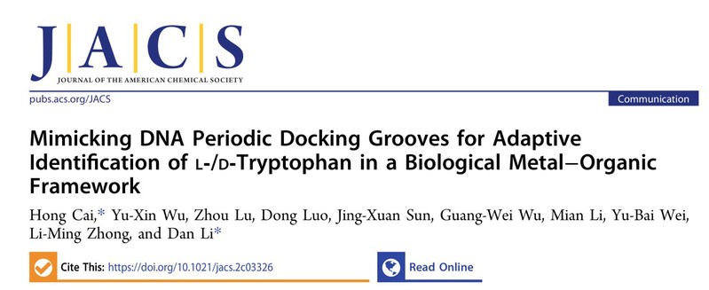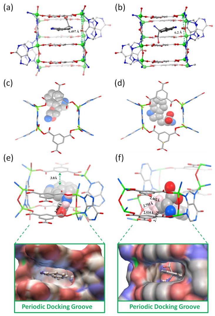 此前,该研究团队开发了一系列BioMOF作为研究平台,模拟DNA碱基对与客体分子相互作用,在分子层次研究超分子识别机制,例如,基于腺嘌呤的BioMOF作为反应器模拟DNA中A-T碱基对的识别作用(Angew. Chem. Int. Ed. 2015, 54, 10454-10459),模拟甲醛致DNA-蛋白质交联(Chem. Sci. 2022, 13, 4813-4820; Mater. Chem. Front. 2021, 5, 2416-2424)等。这些研究为生物体系中分子识别模型的构建和药物靶点的设计提供借鉴,也为药物设计、仿生催化和尖端生物医学激发新思路。