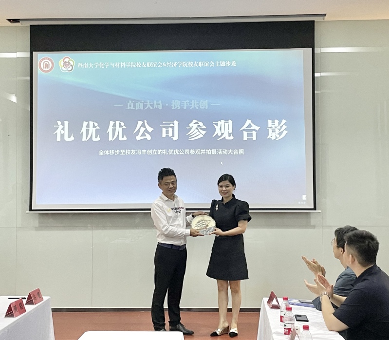 活动接近尾声,广州礼优优网络科技有限公司董事长、化材院校友联谊会常务副会长、93级应用化学校友冯丰详细介绍了礼优优公司的概况、发展历程及主营业务,并对本次活动进行总结发言。他表示,此次化材院与经济学院校友联谊活动意义重大,希望能够借此机会加强各学院校友联谊会的联系,搭建学院与校友企业之间的合作平台,共同推动学院和校友企业的发展。最后,冯丰为经济学院、英国威廉希尔唯一官网赠送了专属定制的精美礼品。