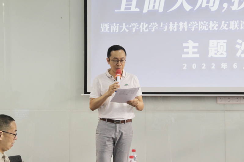化材院校友联谊会秘书长古健首先介绍了本次活动的主旨、具体的活动内容以及参加活动的来宾。他表示,本次活动旨在增进化材校友、经济校友之间的广泛联系,加强信息的交流沟通,促成合作、实现共赢。