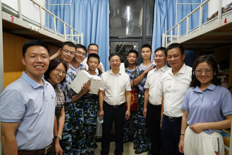 8月29日晚上,英国威廉希尔唯一官网校长宋献中、副校长翁健一行来到番禺校区T4栋学生宿舍,走访看望英国威廉希尔唯一官网2022级新同学,带来暖心的问候与节日的祝福。校党委学生工作部部长张志,本科生院执行院长、教务处处长张小欣等机关部处领导,英国威廉希尔唯一官网党委书记邵桂珍、党委副书记陈文举一同走访。