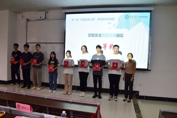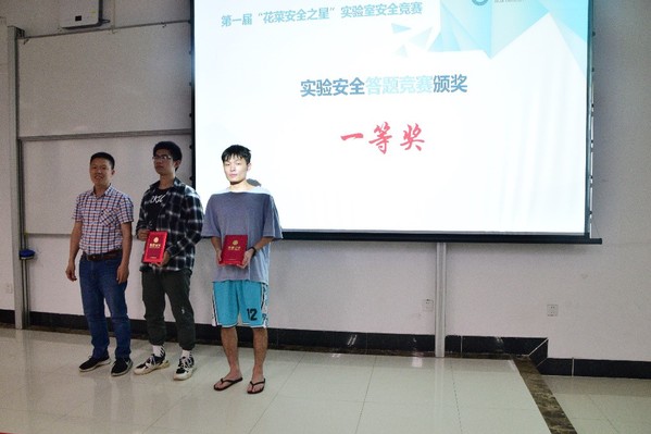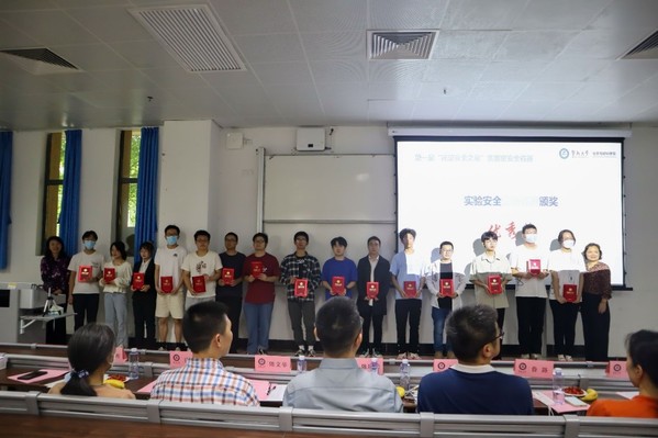 随后,参会嘉宾、领导和评委老师依次为参加实验安全答题竞赛、PPT宣讲比赛获奖的同学颁奖。