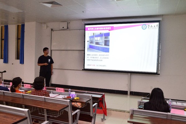 5月13日下午2:30,学院在番禺校区教学楼114室举行了实验安全PPT宣讲比赛。学院副院长陈填烽、学院党委副书记兼办公室主任陈文举、实验中心常务副主任周艳晖、化学系教授白燕、材料科学与工程系副研究员鲁路、实验中心高级实验师周美云、实验中心实验员肖梦、农娟参与本次竞赛活动。特别邀请1998级校友、广东暨创硒源纳米研究院有限公司董事长陈义康作为参会嘉宾。