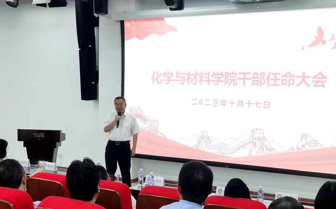 李丹同志感谢学校领导多年来对学院工作的支持和帮助,感谢学院领导班子及全体教职工的支持与配合。他表示,任职期间,学院的科研实力、社会影响力都创下了历史新高,这些成绩的取得离不开学校领导的坚强领导、学院领导班子的团结友爱,也离不开全院教职工的辛勤付出,真诚祝愿化学与材料学院在新一届领导班子的带领下,在未来迈向更高台阶。