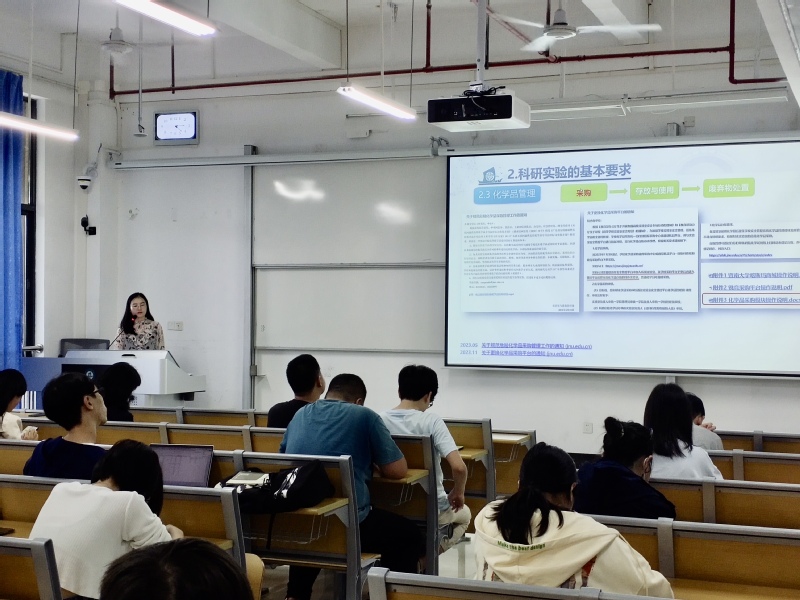 廖小建以“危化品安全管理”为主题,详细介绍了高校实验室危险化学品的常见问题、主要危害、相关安全知识以及相关安全事故等等,全面解析了危险化学品管理的风险点,介绍了实验室危化品采购和管理的基本要求、气体钢瓶的基本知识等等,强调了实验室安全专员应多了解安全基础知识,带领课题组同学提高安全意识,创造良好的科研学习工作环境。