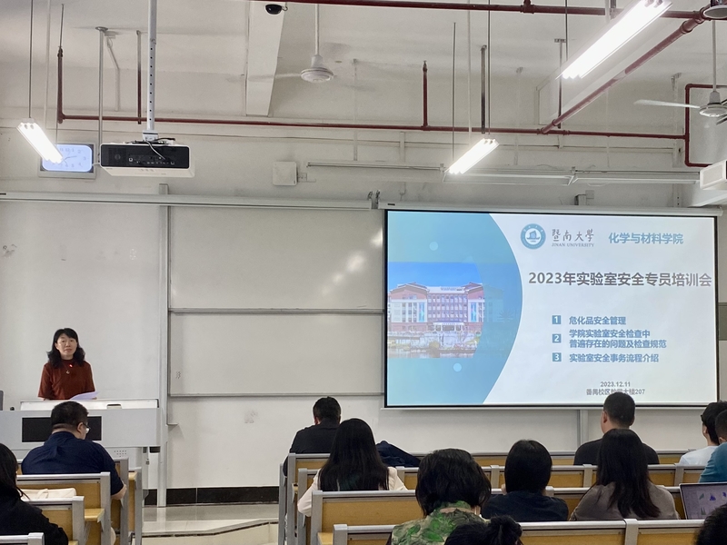 为进一步强化师生实验室安全意识,提高实验安全技能,防范事故风险,学院于12月11日下午在番禺教学大楼207室开展了实验室安全专员专项培训活动。本次培训的主讲人为实验中心常务副主任周艳晖、实验中心副主任廖小建、实验中心安全秘书肖梦。本次培训由周艳晖主持,共17名实验技术人员与45名安全专员参加了本次培训活动。