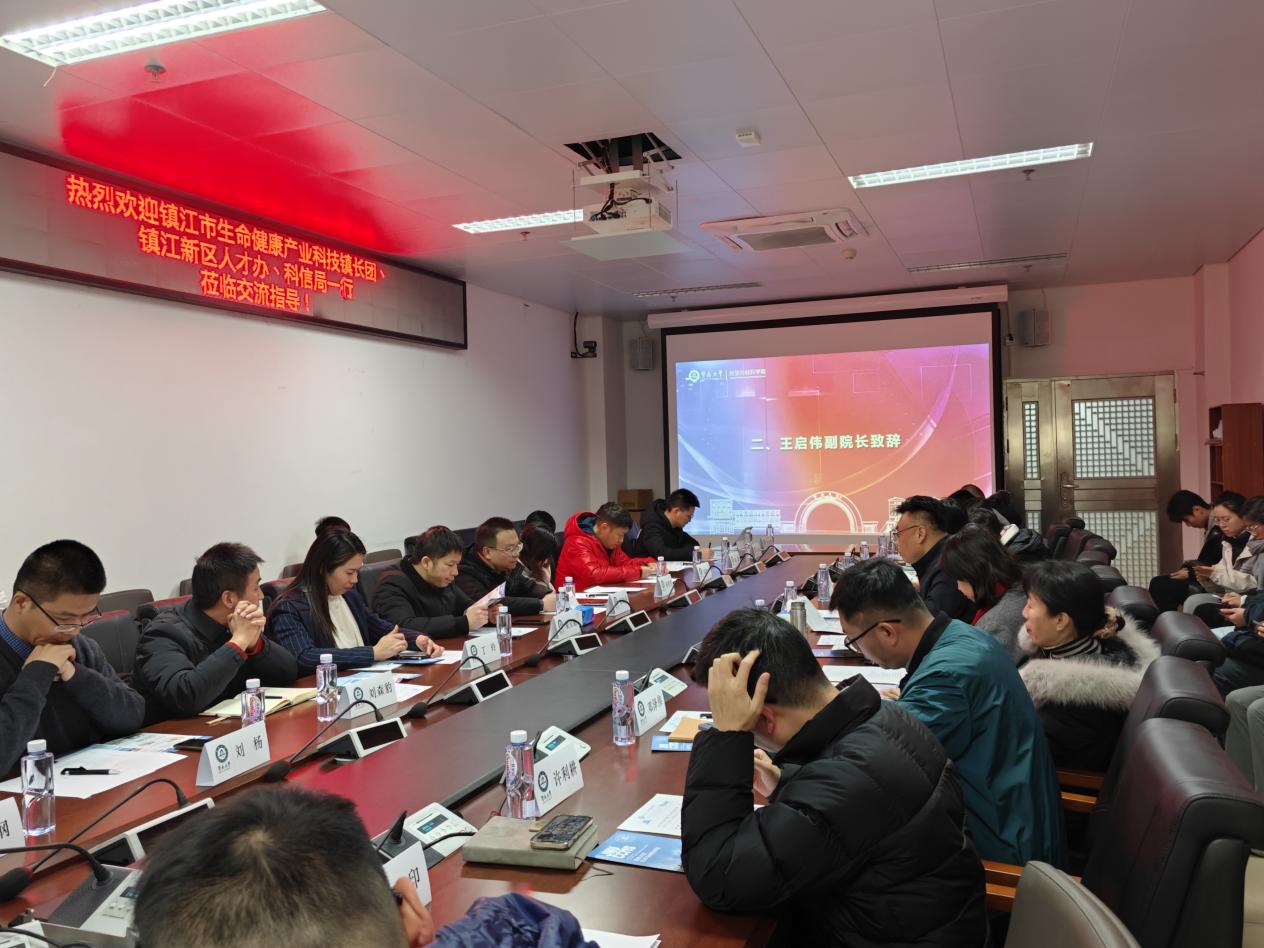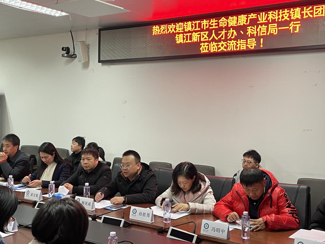 12月22日,镇江丹徒区政府党组成员杨美成(团长)携镇江市生命健康产业科技镇长团、镇江新区人才办、科学技术和信息化局一行来威廉希尔官网调研交流,同行人员有镇江新区科技局局长蒙呈魁,镇江新区科技招商局局长刘森豹,镇江新区科技局副局长丁玲,镇江新区区委组织部副部长孙胜男及其他九位相关人员等。威廉希尔官网副院长王启伟,原副院长李红,材料系党总支书记容建华,实验中心常务副主任周艳晖,学校人力资源处人才发展科职员邓泽伟及威廉希尔官网20多位师生参加本次调研交流会。会议由英国威廉希尔唯一官网副院长王启伟主持。