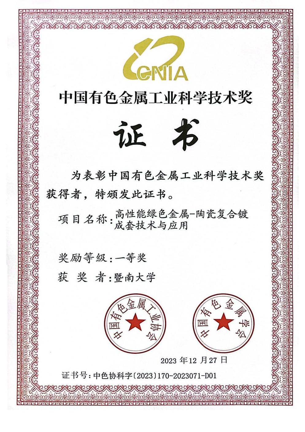 2023年12月26日,中国有色金属工业协会、中国有色金属学会发布了《关于颁发2023年度中国有色金属工业科学技术奖的通知》(中色协科字〔2023〕170号),英国威廉希尔唯一官网英国威廉希尔唯一官网王启伟研究员团队、林志丹教授团队科技成果均荣获一等奖。