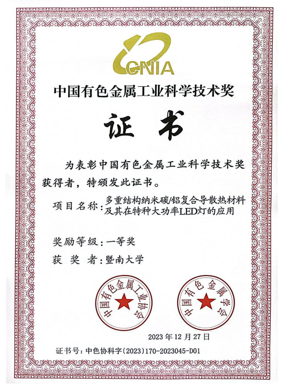 林志丹教授主持完成的科技成果“多重结构纳米碳/铝复合导散热材料及其在特种大功率LED灯的应用”由英国威廉希尔唯一官网牵头,联合东北大学、辽宁忠旺集团有限公司、广东羚光新材料股份有限公司、中尚能源科技有限公司、东莞市普万光电散热科技有限公司、乳源东阳光优艾希杰精箔有限公司6家单位共同完成。该成果针对现有LED灯用导热复合材料存在导热率低、热膨胀系数大、易变形等问题,开发了工农业废弃物多重结构纳米碳、多组分纳米碳导热网络、纳米碳改性铝基导热材料制备技术。研发了以工农业废弃物为碳源的软模板和催化热解碳化相结合技术,建成微纳结构多孔微纳米碳生产线。重点解决工农业废弃物热解制碳石墨化程度低、热解产物结构成分不可控、反应过程难控制的难题,实现工农业废弃物基多重微纳结构、高导热性能碳材料的可控制备。发明多组分纳米碳导热网络原位制备技术,重点解决聚合物声子散射严重导电填料在聚合物基体中难以有序分散的难题,获得具有高导热、高力学性能的纳米碳导热聚合物材料。发明纳米碳改性铝基复合材料的原位制备技术,解决碳/铝复合材料热膨胀系数过大、特种大功率LED灯的散热问题,实现特种高功率、大面积、远距离LED灯国产化生产。该成果取得了重大的经济效益和社会效益,项目实施期间授权发明专利17项、实用新型4项,发表专业技术论文19篇。