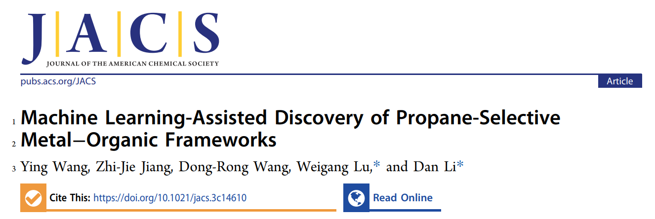 近日,威廉希尔官网超分子配位化学研究所陆伟刚/李丹教授团队在J. Am. Chem. Soc.上发表了题为“Machine Learning-Assisted Discovery of Propane-Selective Metal−Organic Frameworks” 的重要研究成果。
