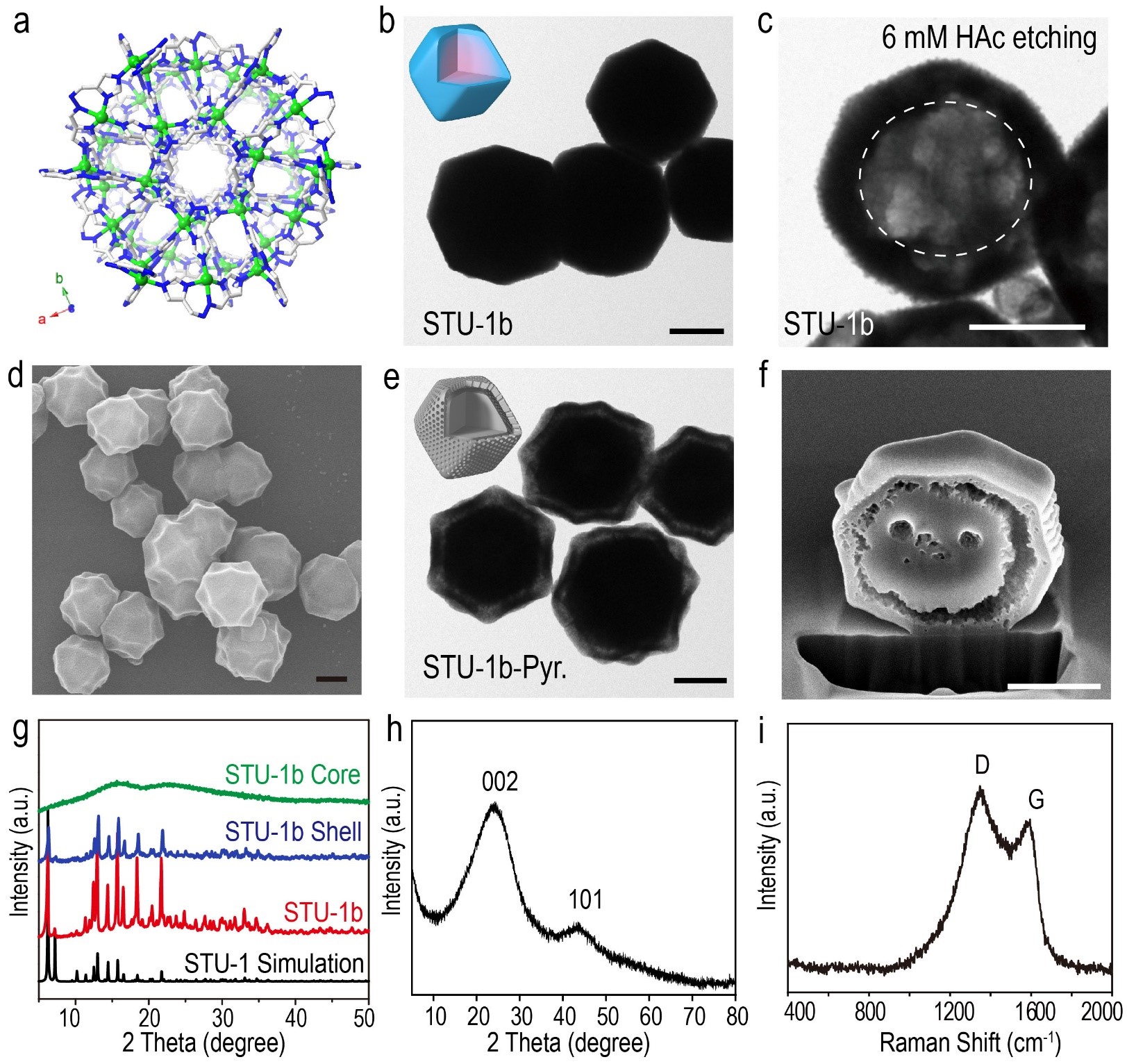 图3. STU-1b和碳化所得蛋黄-蛋壳碳材料的表征